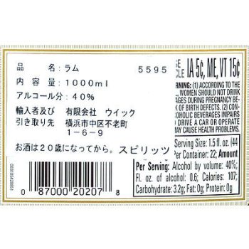 ラム バカルディライトドライ 750ml