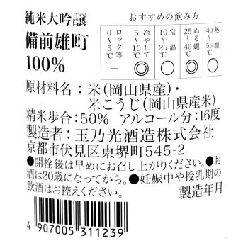 京都 玉の光 純米大吟醸 備前雄町 300ml