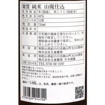 山廃純米 雑賀 720ml