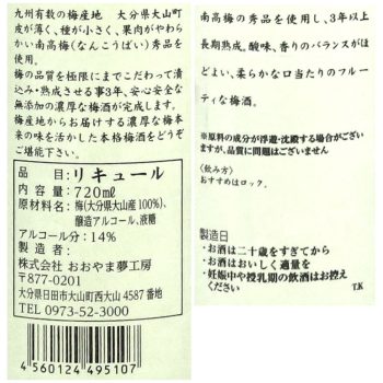 おおやま夢工房南高梅こだわり梅酒 720ML