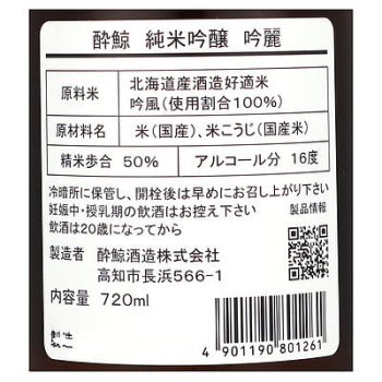 高知 酔鯨 純米吟醸 吟麗 720ml