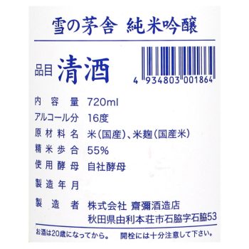 秋田 雪の茅舎 純米吟醸 720ml