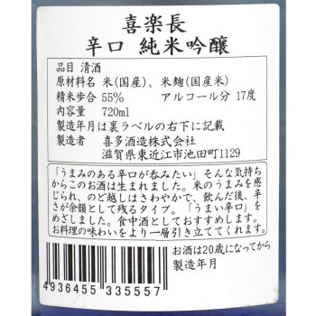 滋賀 喜楽長 辛口 純米吟醸 720ml