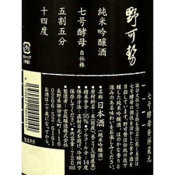 長野 真澄 純米吟醸 野可勢 720ml