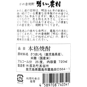 かめ壺焼酎 明るい農村 720ml