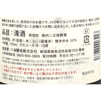 繊細な泡の発泡性日本酒で、軽やかですっきりとした上品な味わいです。※ふき出す恐れがあるので良く冷してお飲み下さい。