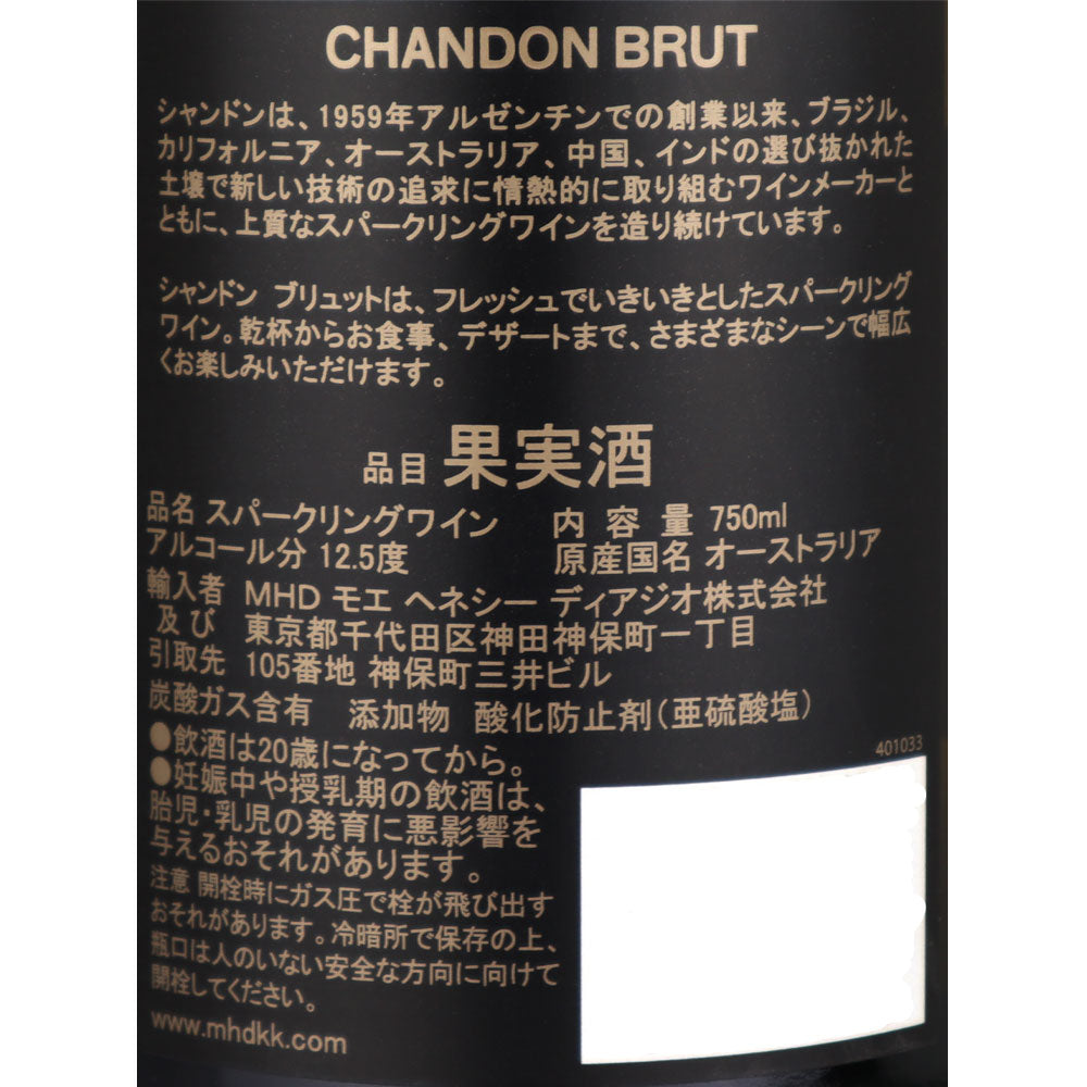 モエ・エ・シャンドン社がオーストラリアで手掛ける本格スパークリングワイン。フレッシュなスタイルでバランスの良いクリーミーな味わい。