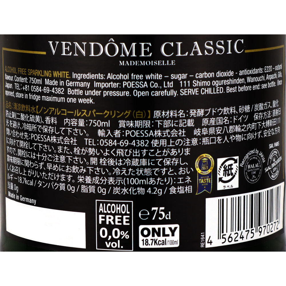 ワインからアルコールを除去したノンアルコールスパークリングワイン。アルコール度数0.0%。ハラル認証付き。