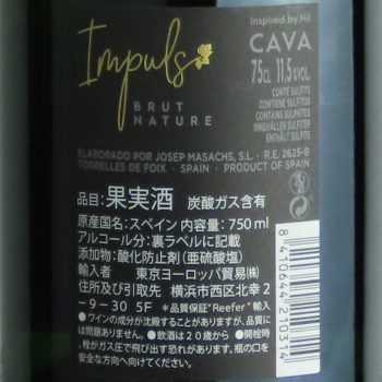 シャンパンと同じ瓶内二次発酵由来の熟した果実の香りが印象的なカヴァ。リキュールを添加しないブリュットナチュレスタイルで造られることにより、引き締まった辛口に仕上がっている。