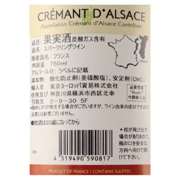 アルザス地方のぶどうを瓶内二次発酵で仕上げたスパークリングワインです。繊細な酸味と伸びやかな余韻が特長です。