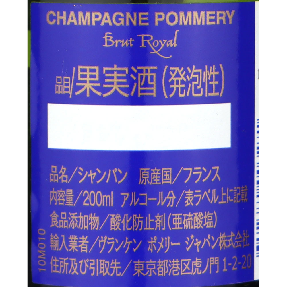 フランス シャンパーニュ ポメリー ブリュット ロワイヤル 200ml