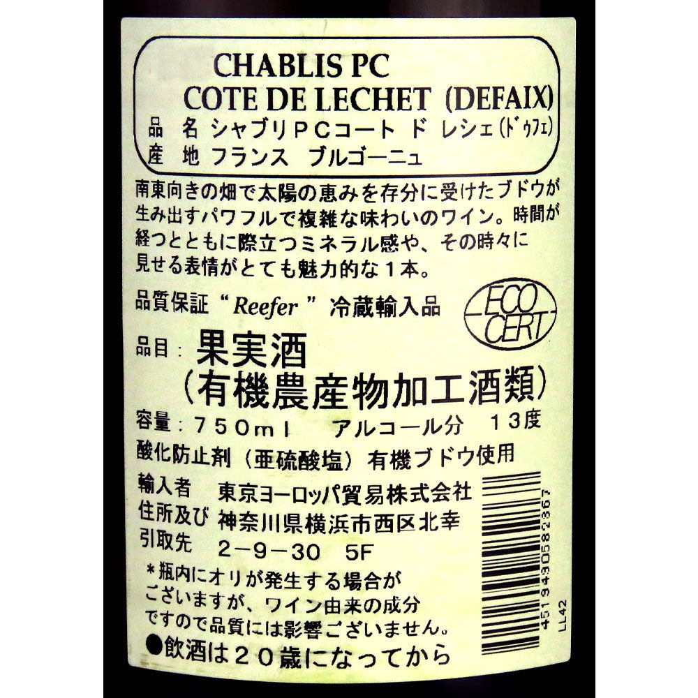 生産者:ドゥフェ。シャブリの1級畑ならではのミネラル感と、ふくよかな味わいが魅力。伸びのあるきれいな酸味が特徴。