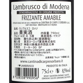 【生産者:カンティーナディソルバーラ】フルーティな微発泡赤ワインです。渋みは控えめで生ハムやチーズはもちろん、中華やエスニックなど様々なお料理との相性が楽しめます。