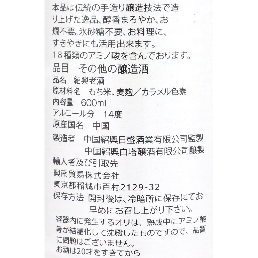 うるち米、もち米、きびなどを原料にして造る中国紹興市の醸造酒。