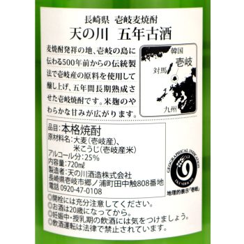 壱岐産の麦、米、水のみから伝統の技で醸される旨みたっぷりの焼酎を5年以上熟成出荷する限定商品。