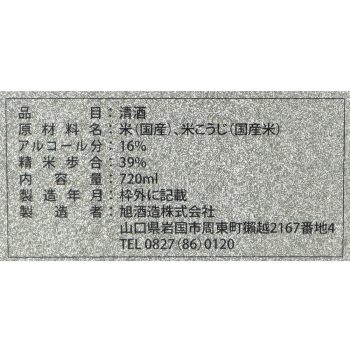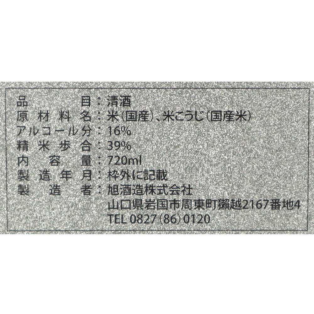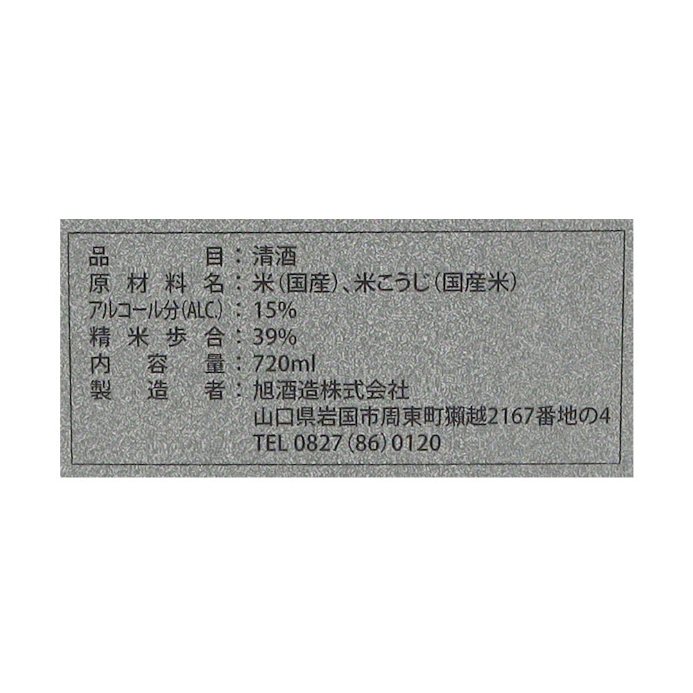 精米歩合39%の山田錦を使用。口に含んだときに見せる蜂蜜を思わせる上品な甘み、後口のきれいな切れが特徴。