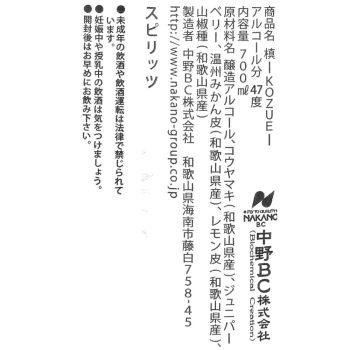 ジン ジャパニーズジン槙 KOZUE 700ml